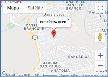 COMO CHEGAR: A sala do PET FÍSICA - UFPB esta localizada no Centro de Ciências Exatas e da Natureza - CCEN,  proximo ao Departamento de Estatística, Matemática e Física.